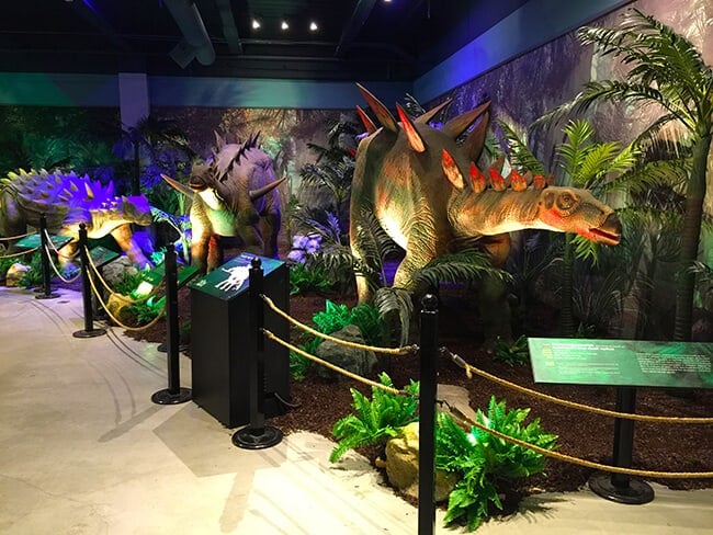 it was great to enjoy a fun afternoon at Discovery Cube OC. late afternoons mean smaller crowds, and most of the school groups have headed home, so we practically had the exhibit to ourselves. we were able to step into the prehistoric world and observe some of the most unique creatures that have ever walked the earth at the Extreme Dinosaurs exhibit. it's a very family-friendly exhibit that transports you back to the Mesozoic Era to showcase the world’s strangest dinosaurs with life-size animatronic dinosaurs along side full-scale skeletons and real and replica fossils.