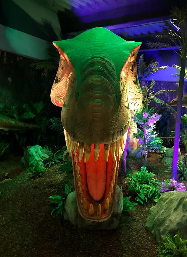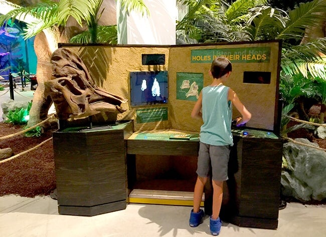 in addition to the life-size dinosaur animatronic models, there are also life-sized skeletons, a variety of real and replica fossils, the exhibition features interactive activities including a children’s dig site for young paleontologists to explore. there are also "Make Me Move" consoles that boy were able to initiate movement of the animatronics, and hands-on learning areas that have touch panels and a Dinosaur Detective quiz. it's all very educational....but very fun too!