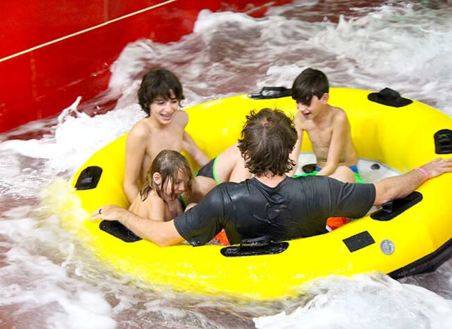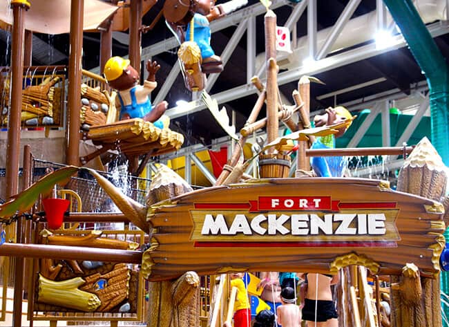 check it out! how fun is this water park. there are slides for every age, Fort Mackenzie with lots of water features and a giant bucket that pours water every few minutes, a full-sized wave pool, places to splash, swim and climb...and sooooooo much more!!!! the water is heated to 84º and the air is also a nice 84º. you don't ever have to worry about rain, or putting on sunscreen.
