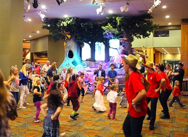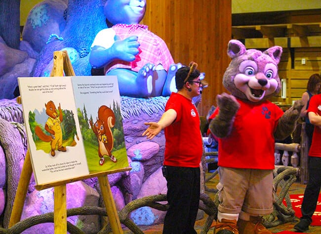 lastly, after a full day of activities at the Great Wolf Lodge, we ended our day with a dance party and bedtime stories around the grand fireplace. all the kids staying at the lodge, even adults, are welcome to wear their jammies and enjoy an evening of fun playing together with Wiley the wolf. then it is off to bed. now that was a fun day.