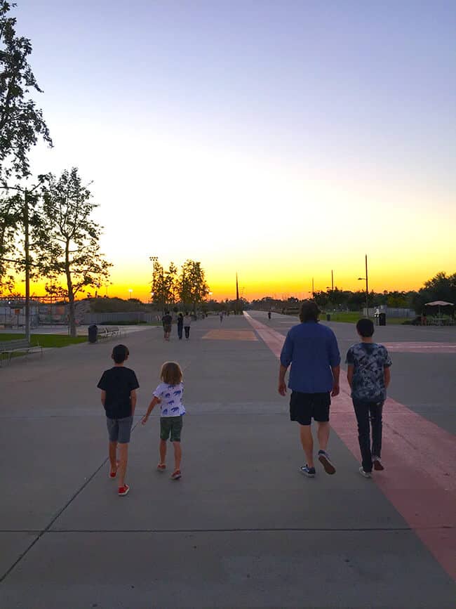 The boys and I wanted to check them out for ourselves, so the other evening, we headed over to the Orange County Great Park for a family walk in the park. It was just what we needed to calm ourselves from a busy weekend, get our bodies moving, and was the perfect way to spend some quality time together.