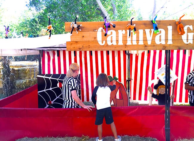 we also like to do some of the activities at the pumpkin patch. there are bounce houses, cookie decorating, hay rides, train rides, games, panning for gold, tractor rides and more. we always go the Irvine Park Pumpkin Patch multiple time a year, so we like to do few different activities each time we come. this time the boys played some games...