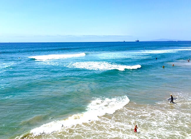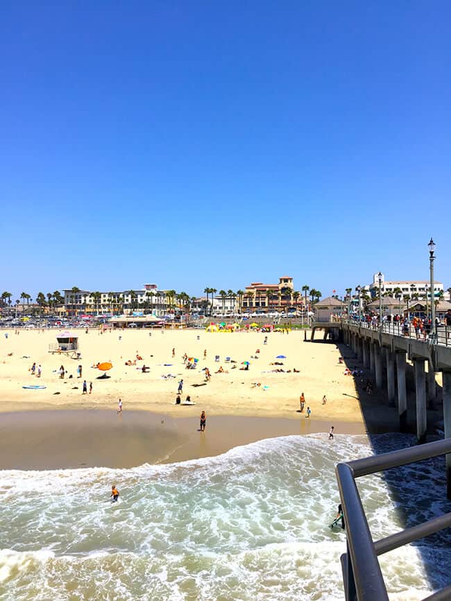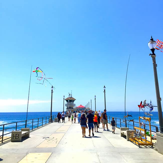 The sky was the brightest shade of blue, the weather was perfect with just a gentle breeze, the waves were a shimmering emerald green, and there was an awesome vibe in the air at the pier on Huntington Beach's Main Street.