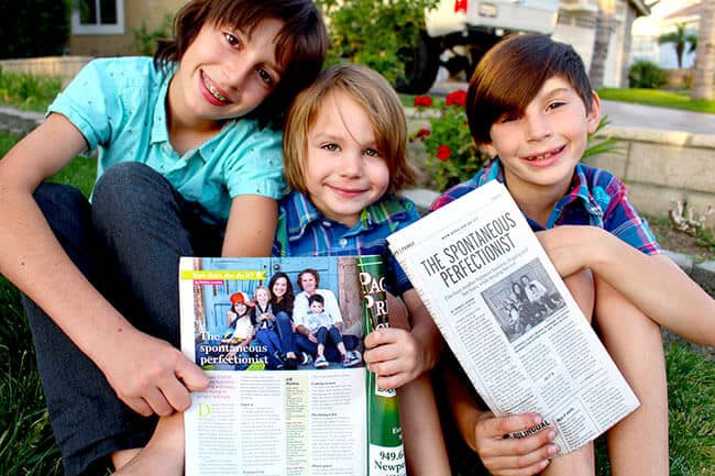 thanks to a few friends and one of my readers, we were able to get our hands on a few copies of the newspaper and the OC Family magazine. it was pretty fun to see it printed in real life, and the boys especially thought it was awesome. here is their proud moment.