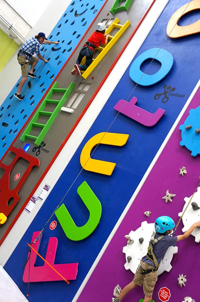 last week we had the opportunity to check out Funtopia at Sender One in Santa Ana…and WOW, it was so AWESOME, and i didn't even know it existed until now. Funtopia is an indoor, interactive center filled with climbing themed challenges for kids and adults. the colorful obstacles and energetic staff makes climbing super fun and educational for kids and even adults.