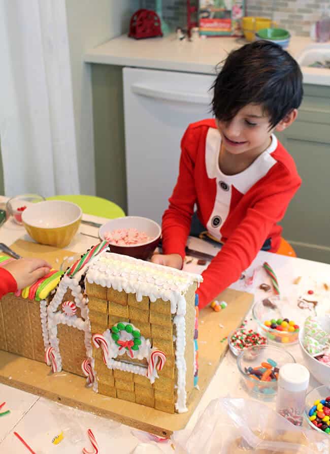 then it was time to start the decorating. first icing and then candy. it takes a bit of patience, but everyone had so much fun. the boys got to be creative and decorate however they wanted. this was a great family activity.