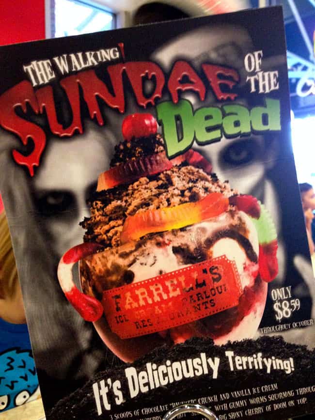 AND...during the month of October, Farrell's has some special things beside the Halloween menu items. first of all, Kids Eat Free at Farrell's in the month of October on select days and times, and you can join Farrell's on Sunday, October 26, from 10:00 a.m. to 4:00 p.m., for the 17th Annual Trick or Treat Festival at the OC Market Place in Costa Mesa. there will be lots of family fun, like free trick or treating, a scary car show, an exhibition of snakes, spiders and other creepy creatures, face painting, food and more.