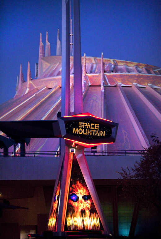 those Disney villians have even "boo"tified Space Mountain into Space Mountain Ghost Galaxy. the experience begins as a typical Space Mountain adventure, but suddenly launches voyagers into a haunted section of the universe. ghosts appear out of the starry darkness and swirling galaxies of Space Mountain, reaching out as if to grab guests as they speed through space. wow...not sure if this is too scary for me...hee hee!