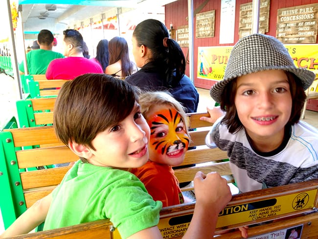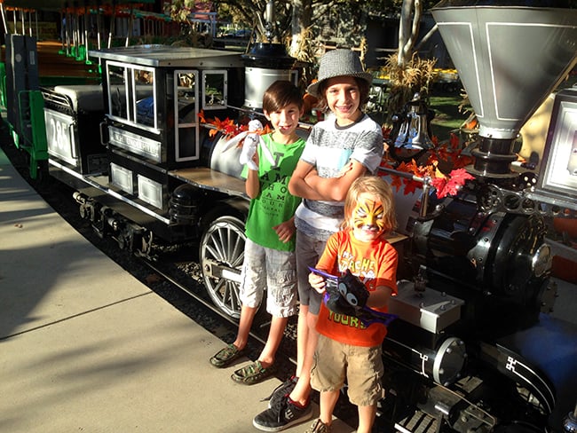one thing we always do at the Irvine Park Railroad Pumpkin Patch is ride the train. it doesn't matter how old you are....it's always fun to ride the train.