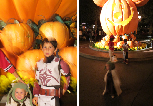 i tried to get the kiddies pictures by the big Mickey Pumpkin. no luck. they were busy having fun.