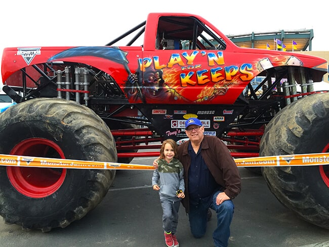 we all really enjoyed the Pit Party, even both grandpas! then we headed back to our car for a tailgate dinner....because that is what you do at Monster Jam.