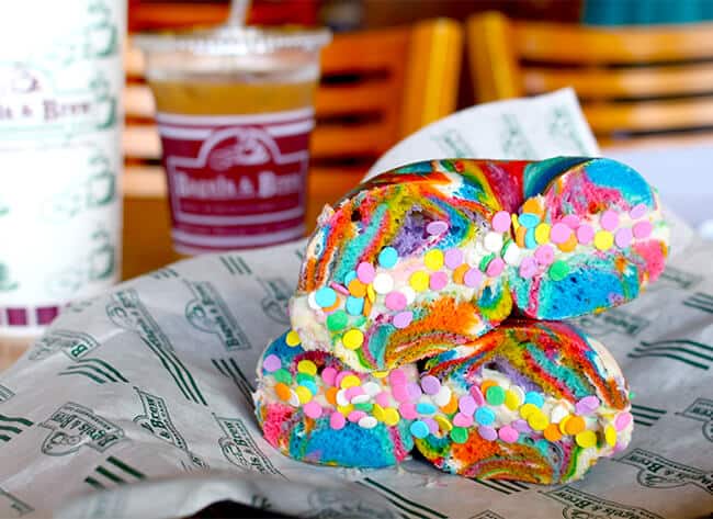 Bagels & Brew has three locations in Orange County – Aliso Viejo, Lake Forest and Mission Viejo. so if you have a Unicorn Bagel craving, there are a few to choose from. they are the neighborhood bagel and coffee spot, and sell not only bagels and coffee, but drinks, treats, cakes, smoothies, burgers, sandwiches, breakfast and more.