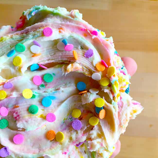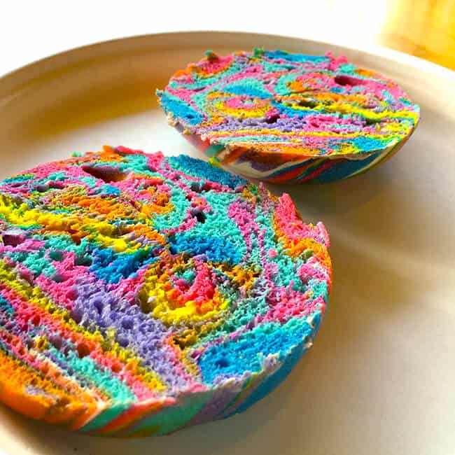 but the Unicorn Bagels and the most colorful item on the menu. and they didn't disappoint. surprisingly, they taste just like a plain bagel. which is how we love our bagels. they are just as colorful on the inside and the outside, and you can top them off with any kind of cream cheese you would like. they boys chose birthday cake cream cheese with rainbow confetti sprinkles, with made our Unicorn bagels taste like dessert.