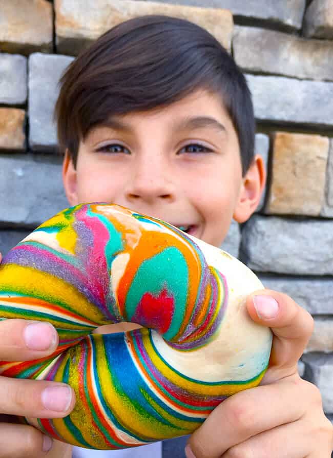 the boys and i are always looking for fun treats to try around Orange County, and these magical Unicorn Bagels didn't disappoint. the bright rainbow colors leave a smile on your face!