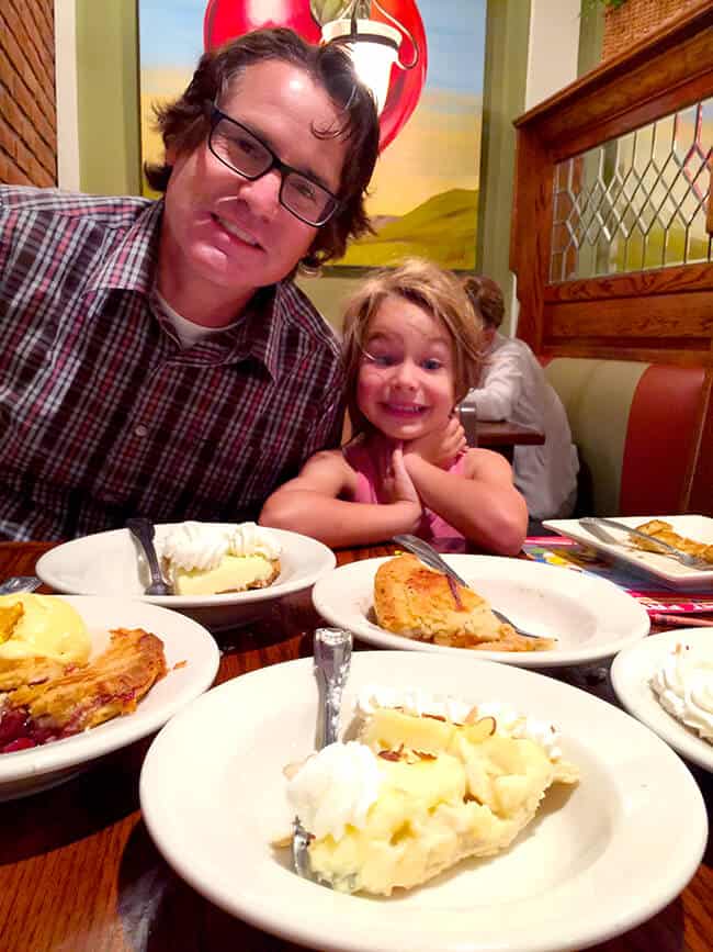 then it was time for what we were all waiting for...PIE!!!!! we all ordered a slice with our meal to celebrate hubby's birthday. it was awesome that the kids meals included a slice of pie. i got mine al a mode, cherry for the win....MY FAVORITE. so many slices of pie. key lime, cherry, banana cream, apple and lemon meringue were our family's choices.