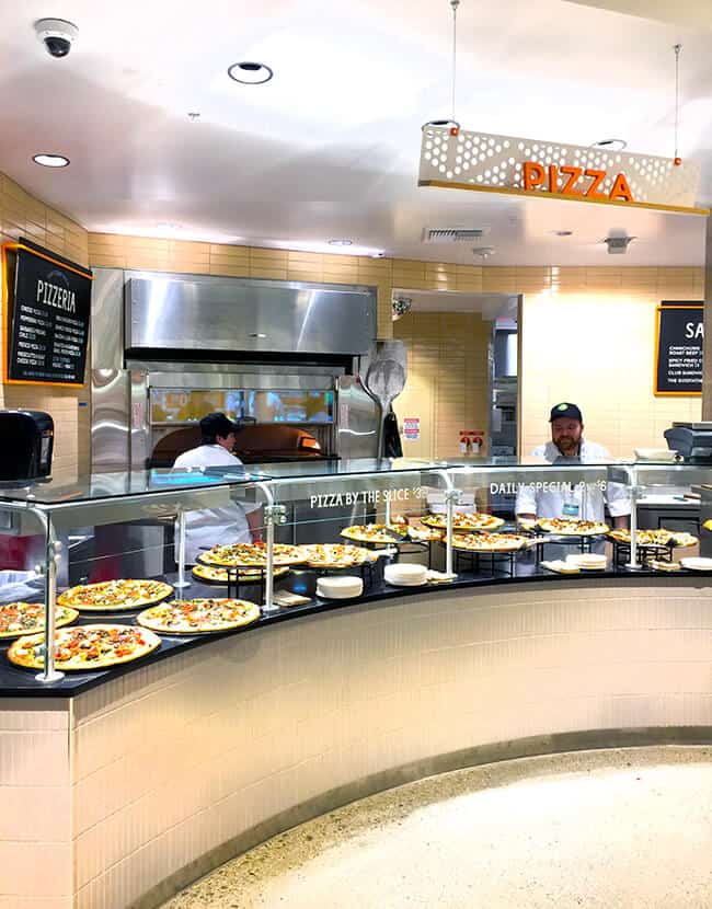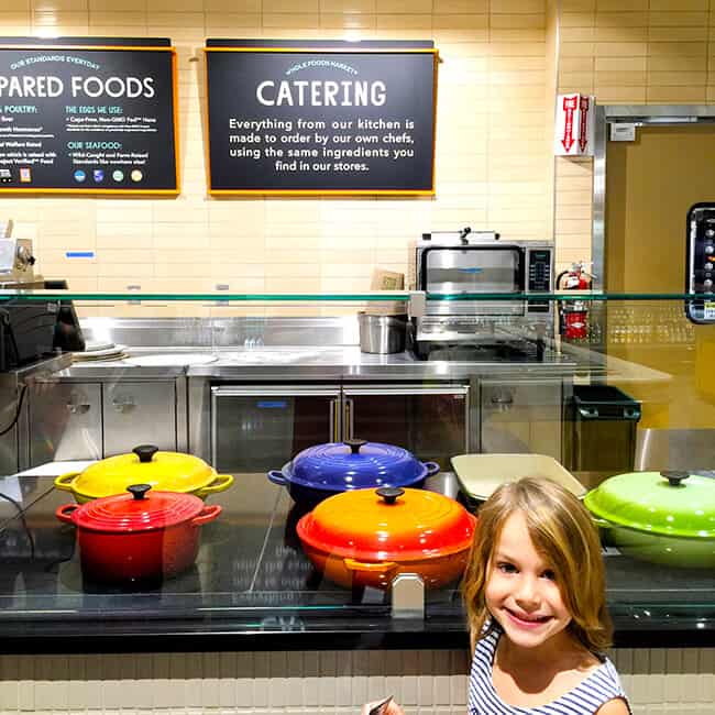 Whole Foods Market chefs prepare food in the in-house kitchen, creating handmade pizza, whole or by the slice, made-to-order sushi, in-house chips, custom-made sandwiches and meals-on-the-go. the department includes a rotating hot bar, an all-organic salad bar, daily breakfast, and global cuisine. catering is available for office and home entertaining needs. deli items and meats are free of added synthetic nitrates and nitrites. prepared foods items meet the same standards as all products sold in the store and many are locally sourced.