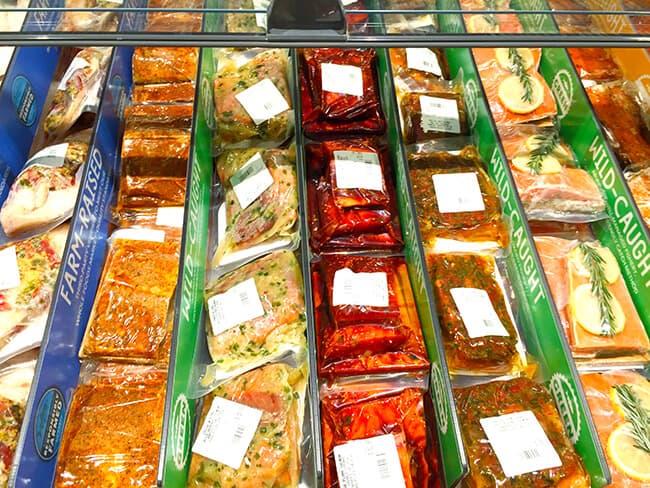 the seafood department carries made-to-order poke and hand-sliced smoked salmon daily, sustainably sourced fresh fillets, steaks, local and seasonal seafood. seafood is cut in-house daily and is delivered six days a week, and the fresh whole fish can be cleaned at no charge, a grill-ready assortment of seafood burgers, crab cakes and marinated options, value-priced, vacuum-packed fish and shellfish, and a variety of seafood salads and ceviches made fresh daily.