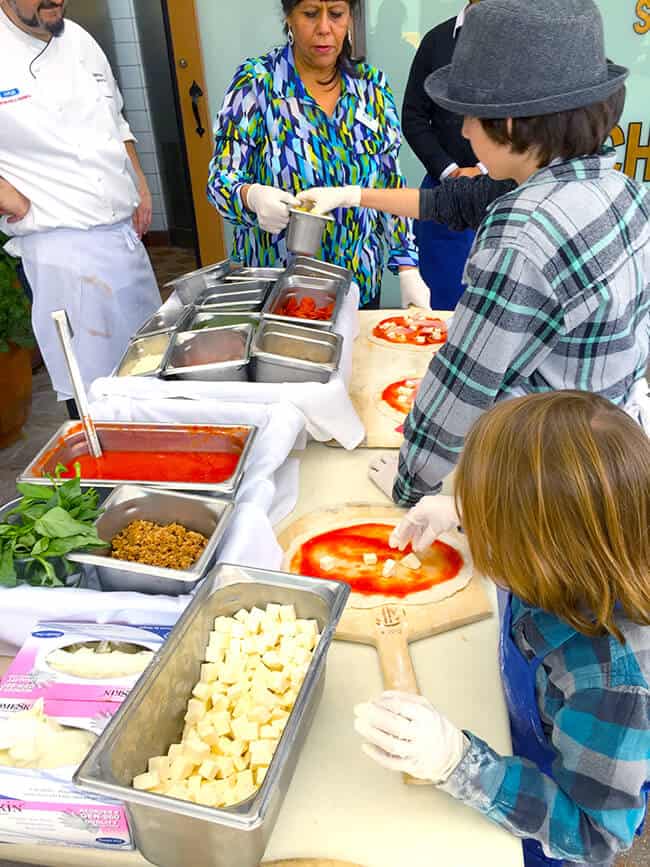 last weekend my family was invited to a Pizza Making Party at Naples Ristorante e Pizzaria. it's one of the fabulous Downtown Disney restaurants here in Orange County at Disneyland Resort. we were all very excited to attend because, besides loving pizza, we were going to get to make them ourselves. the boys have been obsessed with Master Chef Jr. and now have been begging for cooking lessons. so a pizza making party was right up their alley. i might've been just as excited as the boys!