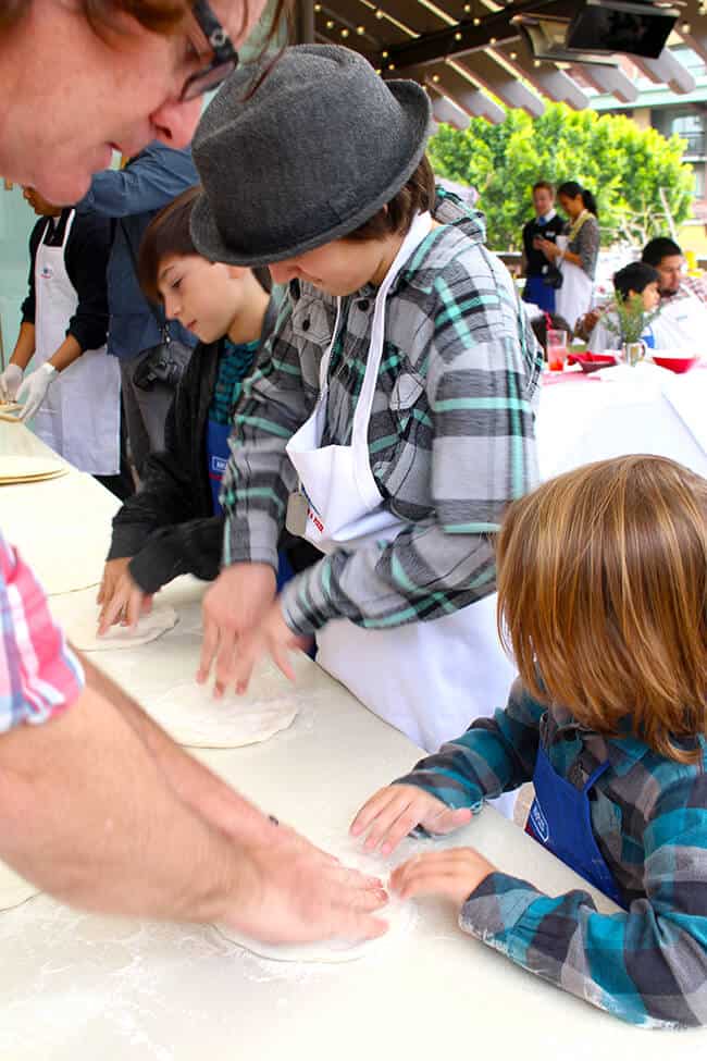 then it was our family's turn to make our pizzas! time for some fun. the boys did great, and the chefs were right by our sides to teach and help us with our dough.
