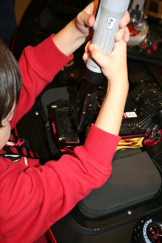 next, you get to go to the pit area where you actually get to build your car. you get to use REAL TOOLS! and...if you want to put a remote control in....YOU CAN!