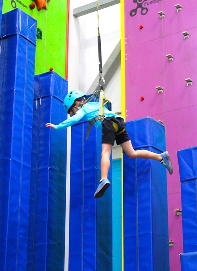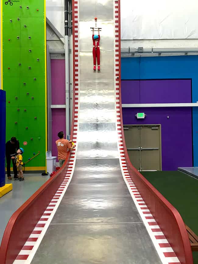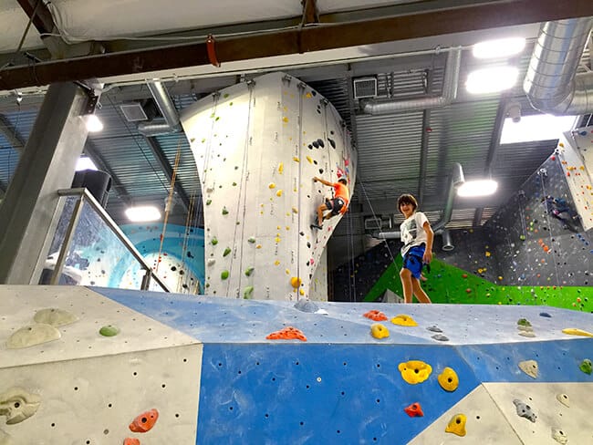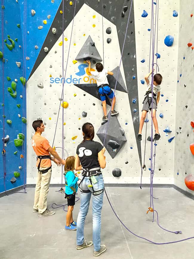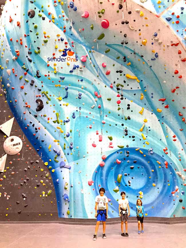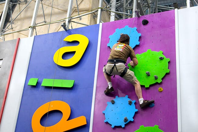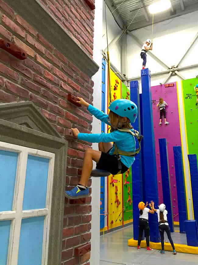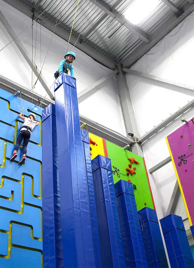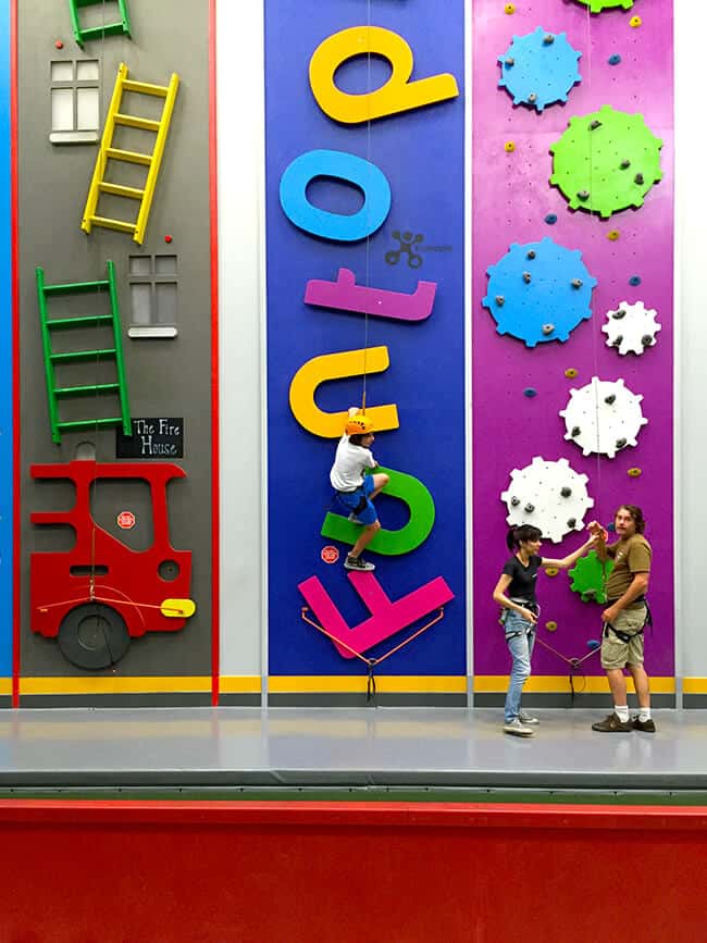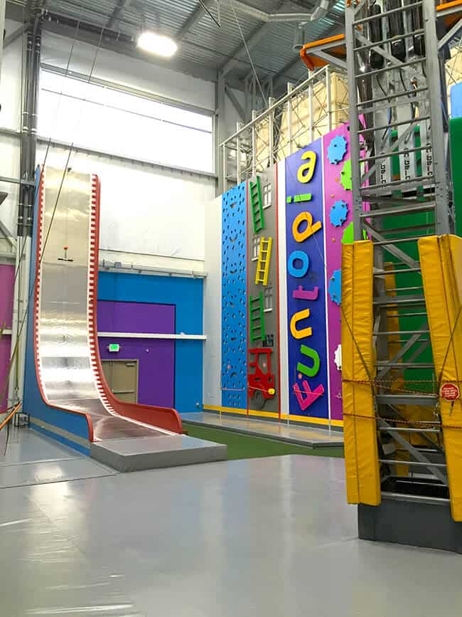 The second area, Sender City, great for kids (as well as parents) with brightly colored climbing challenges, towers, and obstacles.