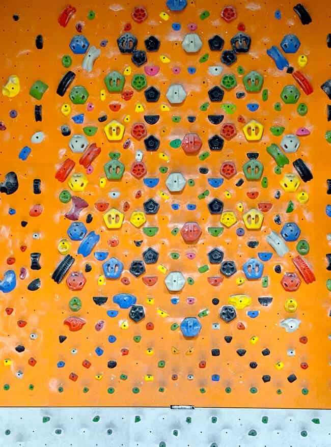 Bouldering is climbing without a rope on shorter walls. All you need are a pair of climbing shoes and chalk if desired.