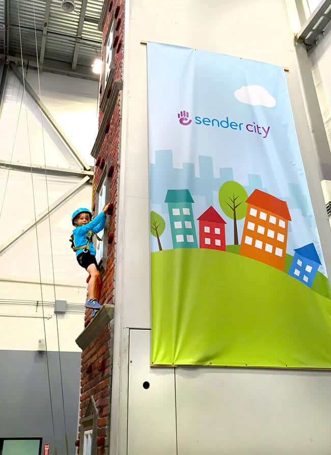 What I love most about Sender City, is that it is a great place to help kids learn confidence. A lot of the obstacles seem scary at first, but it is fun to see them try again and again and gain the ability and confidence to get to the top.
