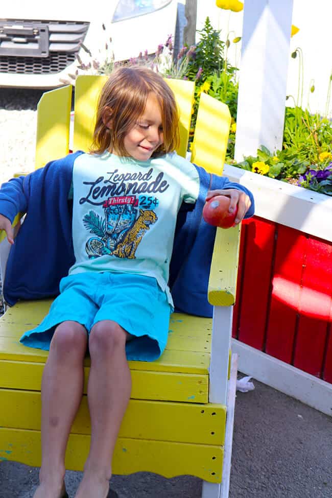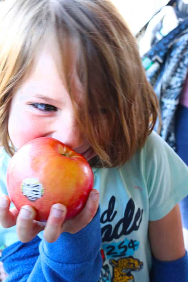 We ended up with four baskets of strawberries to take home. They were priced at around $3 per pound which is great for organic strawberries. They also didn't last long because they were sweet and delicious.then it was time to head home. But first let's eat an apple hee hee.