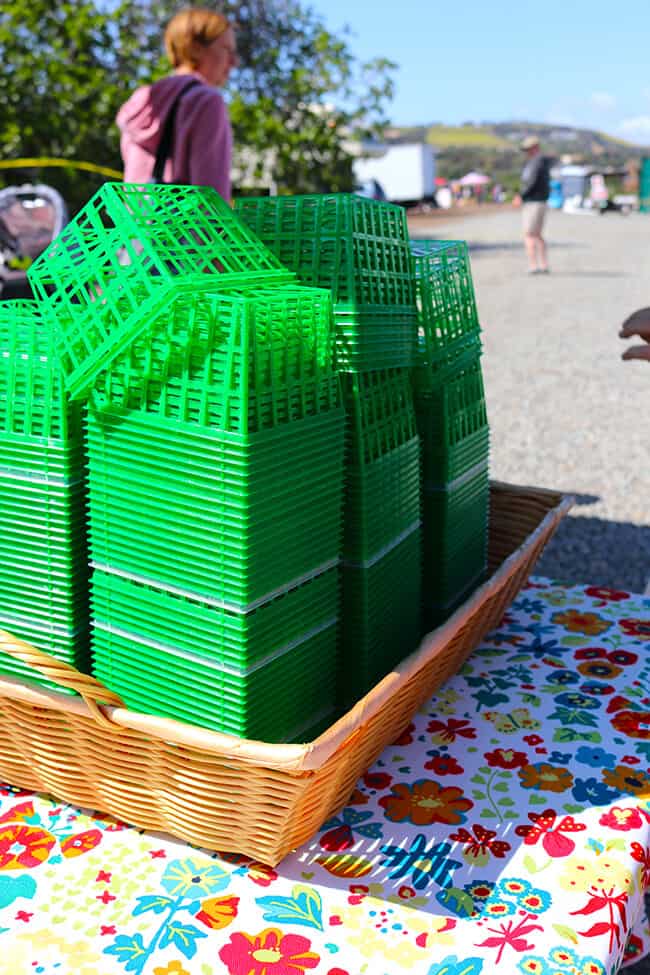A few weekends ago, we decided to head down to South Orange County and go strawberry picking in San Juan Capistrano at South Coast Farms. It's located in the heart of San Juan Capistrano just about a mile from the San Juan Capistrano Mission. Quite a few Sandy Toes and Popsicle Blog readers have recommend i check it out, so i just had to. and i was very glad i did. our family had the best time picking strawberries and enjoying the beautiful fields, landscape and OC sunshine. and the best thing is that all the strawberries are organic! We started by grabbing a handful of baskets...you are also welcome to bring your own baskets or sacks, and headed over to the field.