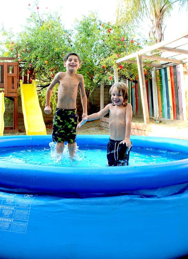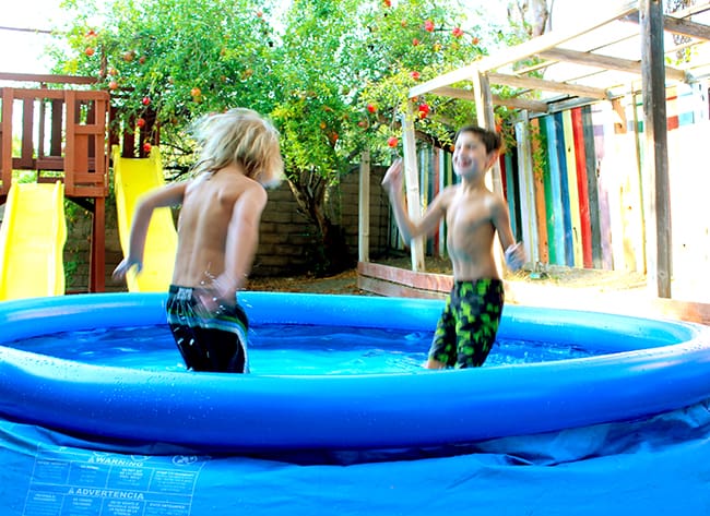 it's also been nice to use since school has started, because they can play in it after school to relax after the long day. it was also the hit of the party at our last day of summer messy party. the kids were jumping all over the place in the water and also filling up their water guns from it.
