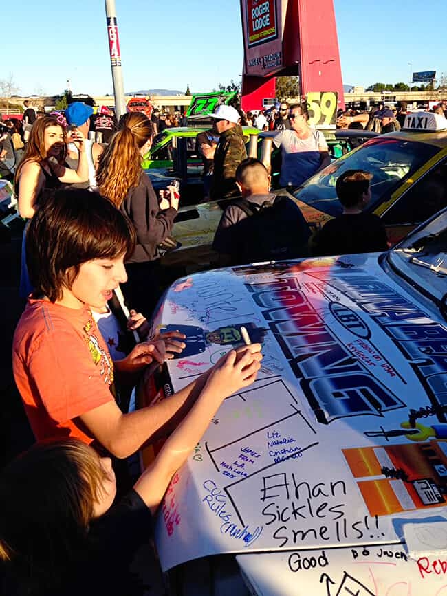 this is an awesome experience for any monster truck lover. the boys were able to get autographs from the drivers and even sign a truck.