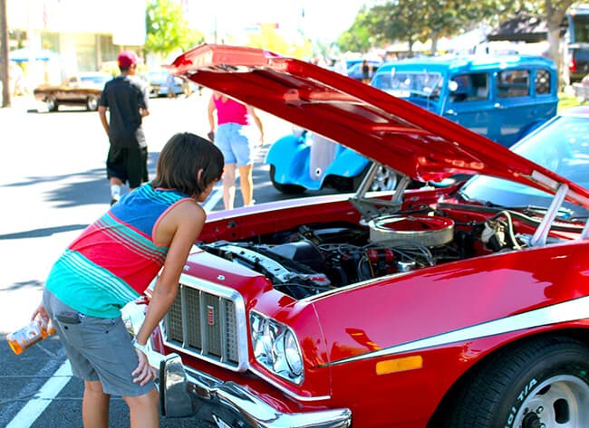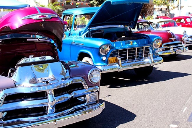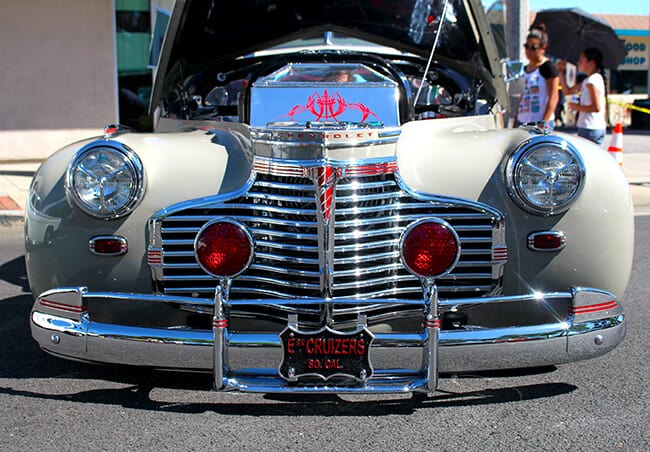 it was very hot the day we attended, over 110º degrees, but the streets were hopin' with bright color classic cars and spectators. barbecues and smell of yummy fair food wafted through the air.