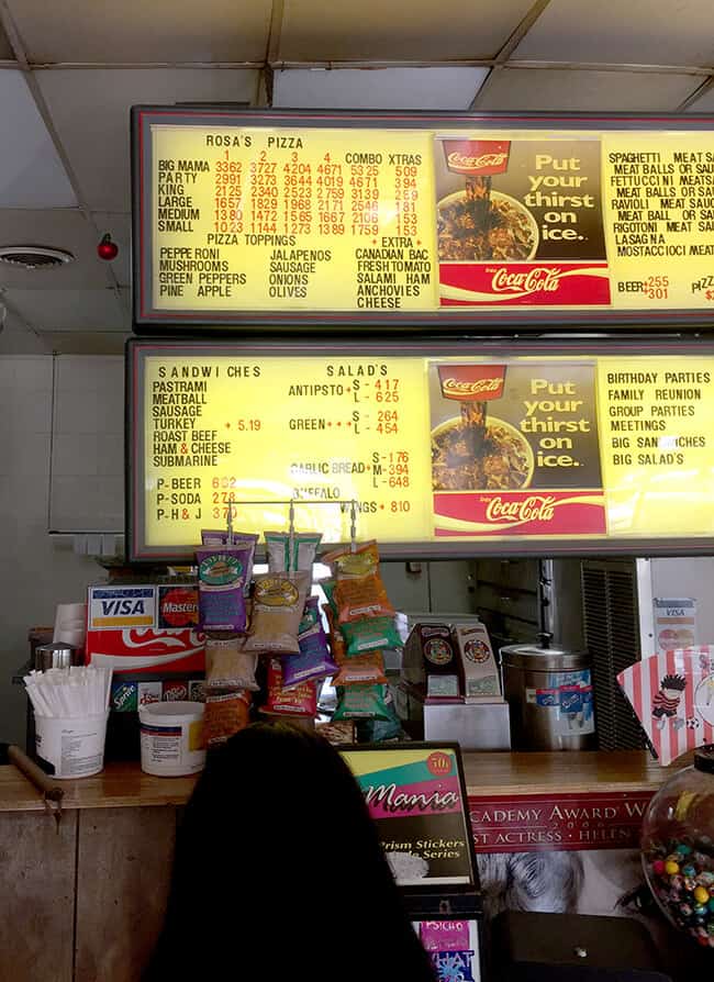 Pizza Rosa is especially known for their the giant pizzas that are called "Big Mama" pies. Most likely the biggest pizzas you've ever seen. Plus, they also serve fresh salads, deli sandwiches, spaghetti & meatballs and more.