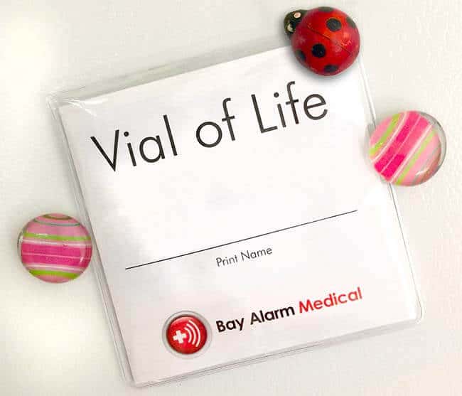 in the Bay Alarm Medical package, there is a Vial of Life packet. it is where we added grandma's list of medications, medical information and allergies. this will help emergency personnel in the event that she can’t speak. we placed the Vial of Life on the refrigerator, it needs to be somewhere easy for EMTs to access.