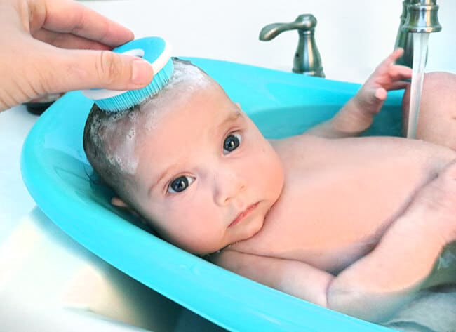 luckily, skip forward to baby number four, and i found this Boon CARE Cradle Cap Brush. with soft bristles to gently massage scalp and remove dry skin without removing any of that soft and adorable baby hair.