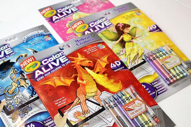 Crayola Color Alive Coloring books take drawings off the pages of a coloring book and into places limited only by a child’s imagination, fusing real-world creativity with digital interactivity. currently, they are available in four coloring books: Skylanders™, Barbie™, Enchanted Garden™ and Mythical Creatures™, each book containing 16 coloring pages, each featuring a unique character and animation, and comes with seven crayons, including one Magic Crayon.