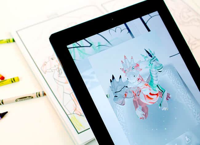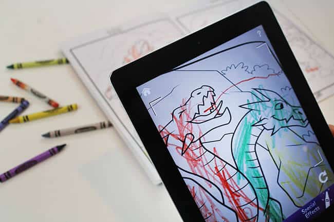 brand new coloring books are the best. flipping through the uncolored pages for the first time and picking which one you will color first is part of the fun. but knowing these are action pages, and that what you color will come to life is even more exciting. with Crayola Color Alive, children can color dragons and then watch them take flight, breathing fire into their stories and anywhere else their imagination takes them. it's a 4D experience. my boys couldn't wait to get started.