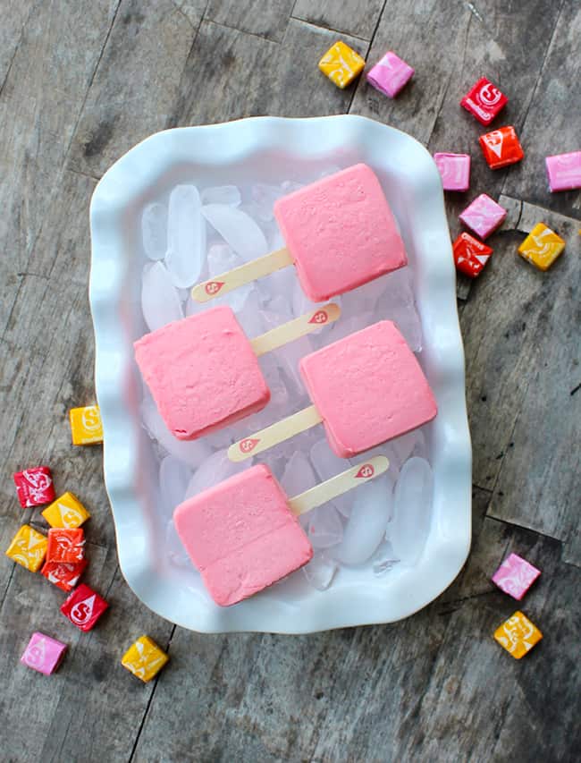 when my boys saw me enjoying the new Starburst® Sorbet Bars, they talked me into sharing. they love Starburst…so when they saw giant frozen Starburst® on a stick, they couldn't resist trying them.and of course they liked them! probably even loved them.