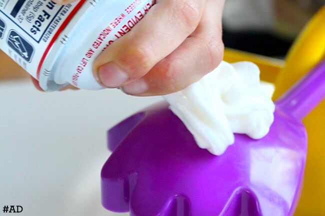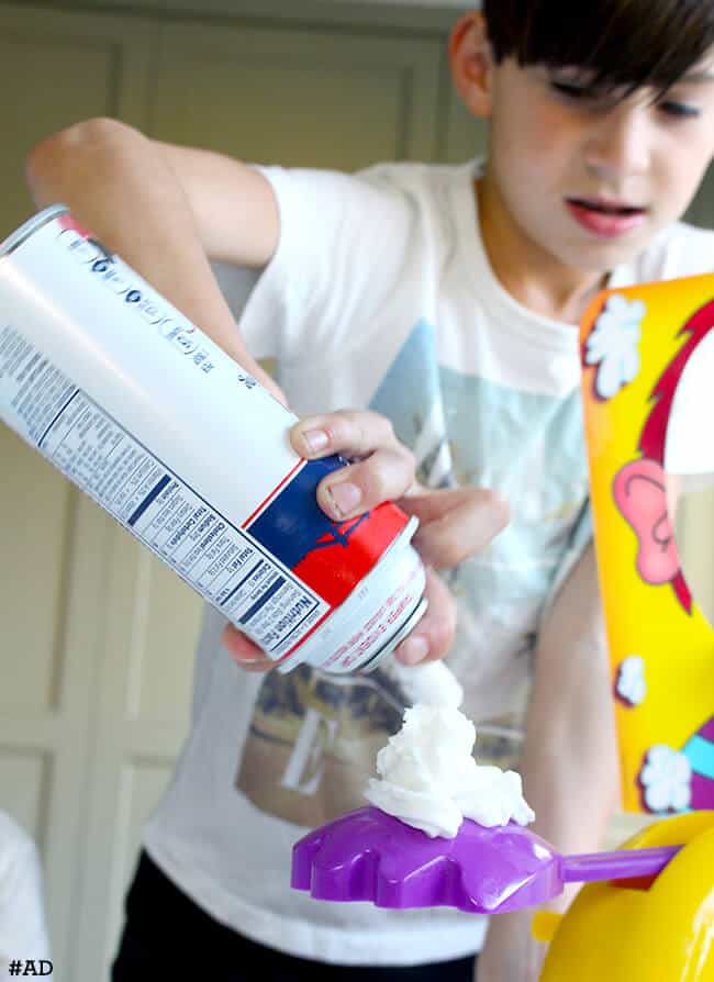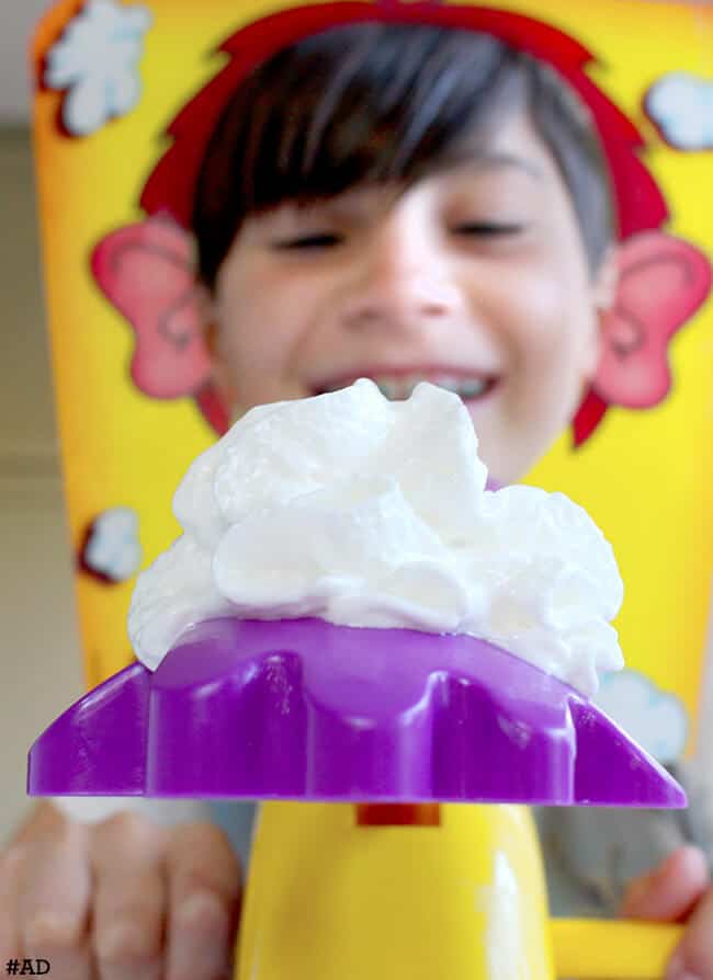 if you haven't heard about it before, the Pie Face is a game of whipped cream roulette. this wacky game allows you to get messy with a face full of whipped cream. and may i add that it's also yummy as well. All you need is the game and a can of whipped cream (whipped cream not included), and you'll be ready to play. start by filling the hand with a dollop of whipped cream.