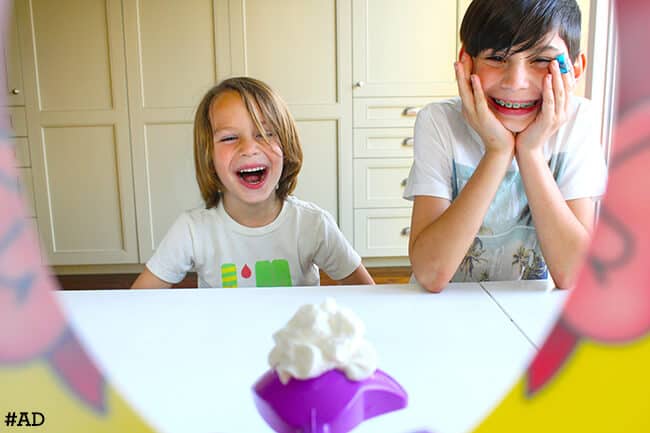i am happy to say that the boys and ihave been doing a great job of playing more board games and having less screen time. it makes me happy to see them all playing together and having a fun time with something other than electronics. i have recently shared our love for the Hasbro games – Hungry Hungry Hippos and Monopoly Empire games. now, i just have to share the Pie Face game with you!!!! if you are looking to have a hilarious time of belly laughs and smiles bigger than your face...then you are going to want to play the Pie Face game.