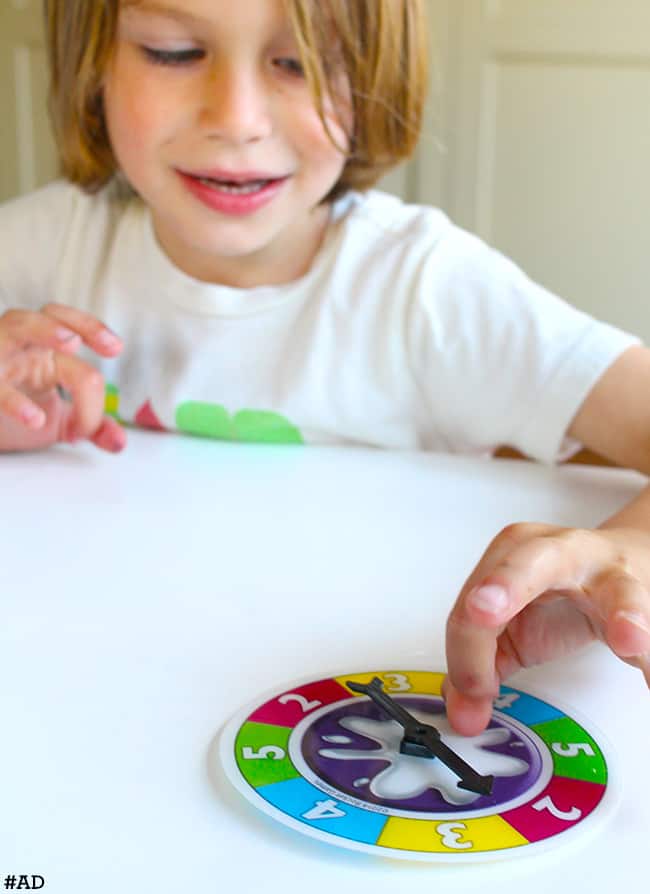 now, each player will take turns passing around the apparatus, spinning the spinner as they rest their face on the game piece.