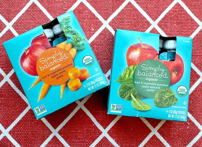 i was excited to find these Simply Balanced organic fruit & vegetable pouches in apple carrot puree and apple spinach puree.