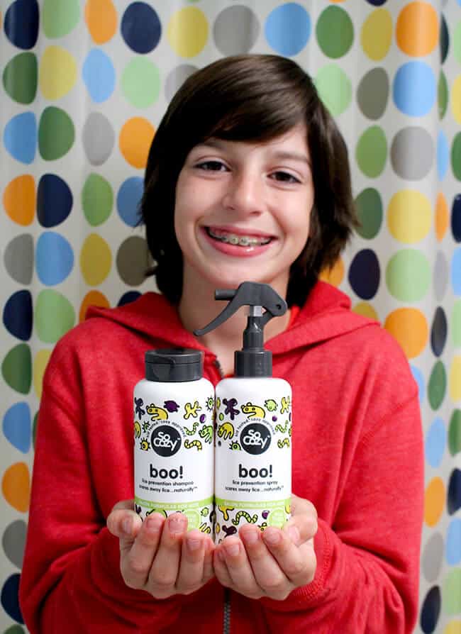 my boys are freaked out about lice. the older two have unfortunately gotten it before, and it was NO FUN AT ALL. so we are really excited about the SoCozy Boo! Lice Prevention Products. they have been clinically proven to repel away lice naturally. by using this fresh scented lice prevention shampoo, the little buggers will want nothing to do with you. this makes my boys REALLY HAPPY.