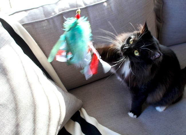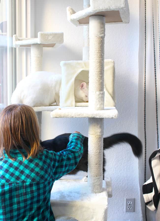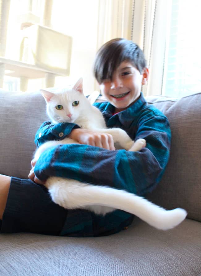 every night like clockwork, Ferby climbs onto the top bunk with my Kyle and sleeps at the foot of his bed. its the sweetest thing. without any coaxing at all, when he hears my son brushing his teeth, he heads into the boy’s rooms and gets settled for the night. this has to be one of my favorite meow moments.