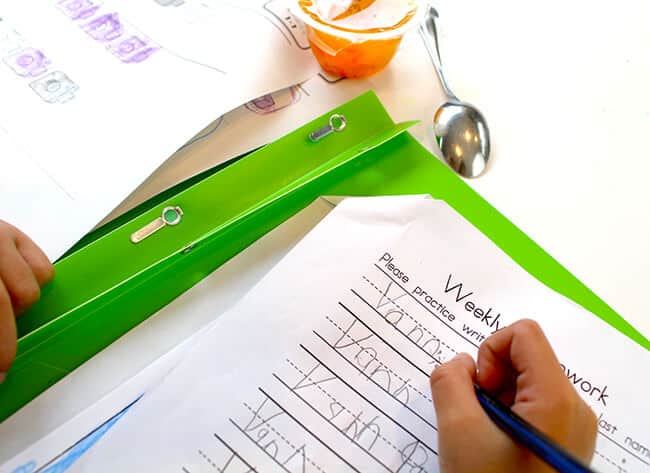 this week the kindergartner teacher must have been working with him because he now has been spelling it correctly and much more legible. yay! another super moment.