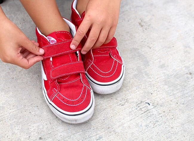 up until now this guy had been all about the flip-flops, and i can't say i don't blame him. he's a California boy and loves his flip-flops. so, getting him to wear tennis shoes and putting them on himself is a super moment.