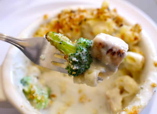 and the "Don't Be Afraid Doe," alfredo inspired mac and cheese with yummy white sauce, chicken and broccoli.