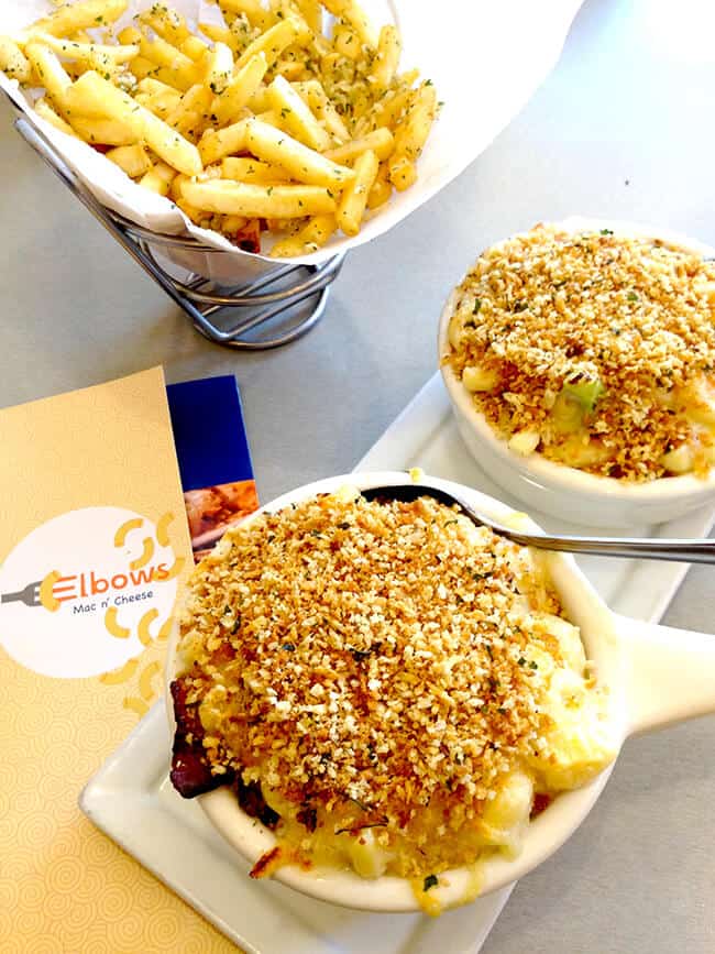 if you are a macaroni and cheese lover, then be sure to check out Elbows Mac 'N' Cheese. the food is made fresh to order and the service is great. ooey, gooey, yummy mac and cheese makes anyone happy. head over to their website for directions and menu options.