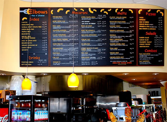 Elbows Mac 'N' Cheese has two locations here in Southern California, one in Brea and the other in Cerritos. it's a quick dining restaurant without formal servers, so you can eat quickly or relax for a while and enjoy a slower meal. of course you are going to want to come for the macaroni and cheese. there are over 20 different macaroni and cheese dishes to choose from including traditional macaroni and cheese to seafood or bacon macaroni and cheese. if you are looking for comfort food, then Elbows Mac 'N' Cheese is the place to go.