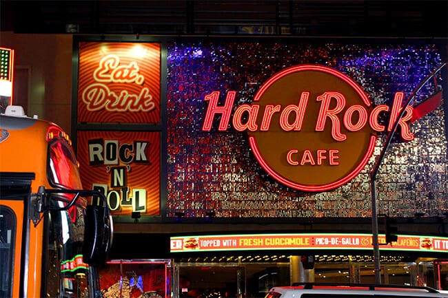 i would say, that one of the coolest things in the restaurant is this giant interactive digital wall. you can use it to see what items of memorabilia each Hard Rock Cafe in the world has. just press the screen, select the item your are looking for, and it pops up.